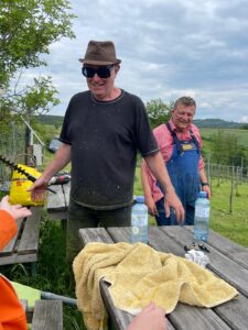 Vier Wochen Abstand seit dem letzten Mähen ließ Schlimmes befürchten, es war aber nicht soo arg. Thomas und Johnny mähten mit zwei Mähern und waren in knapp drei Stunden durch. Keine Hasen- oder Schlangenopfer. Die Stöcke schauen allerdings noch ziemlich erbärmlich aus.