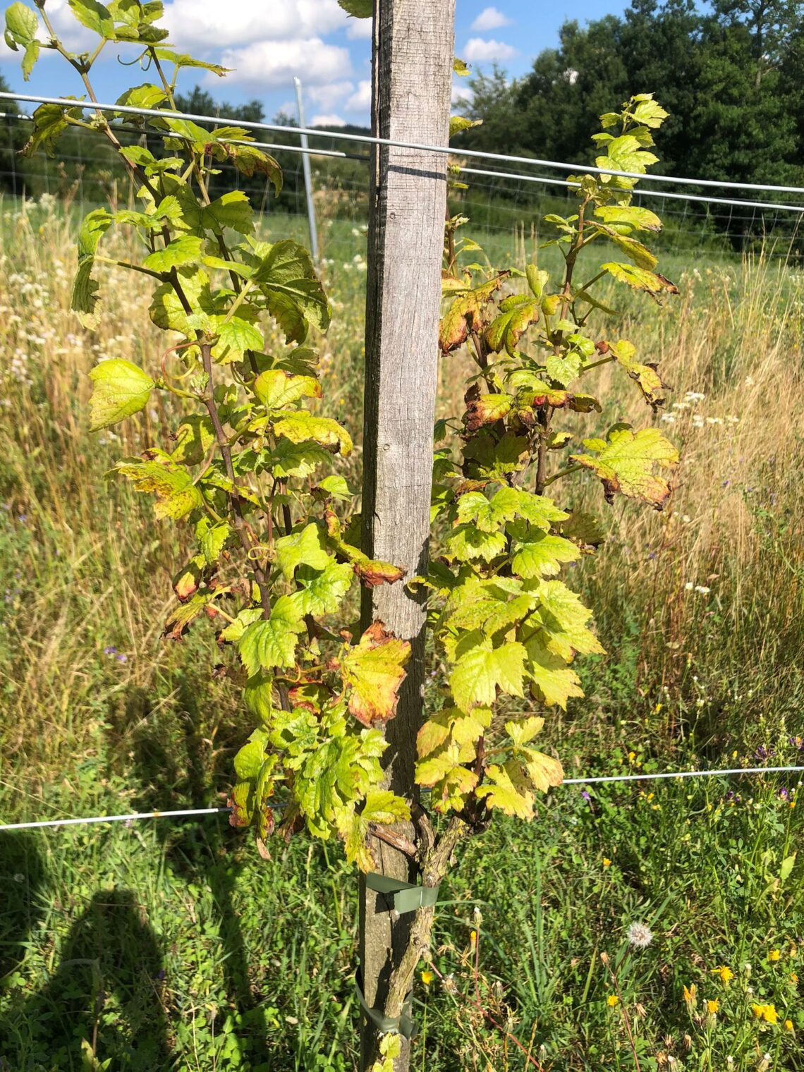 Florian schreibt uns am 19.: „heute mal eingestrickt, bisschen ausgebrochen, traubenzone ausgelichtet. resümee: die vier bis fünf unteren stöcke jeder reihe sind fit, haben so lange reben wie‘s gehört. da sind auch trauben drauf. in der mitte dafür jämmerlich. zwischendurch immer wieder mal gute stöcke, seltsam.“