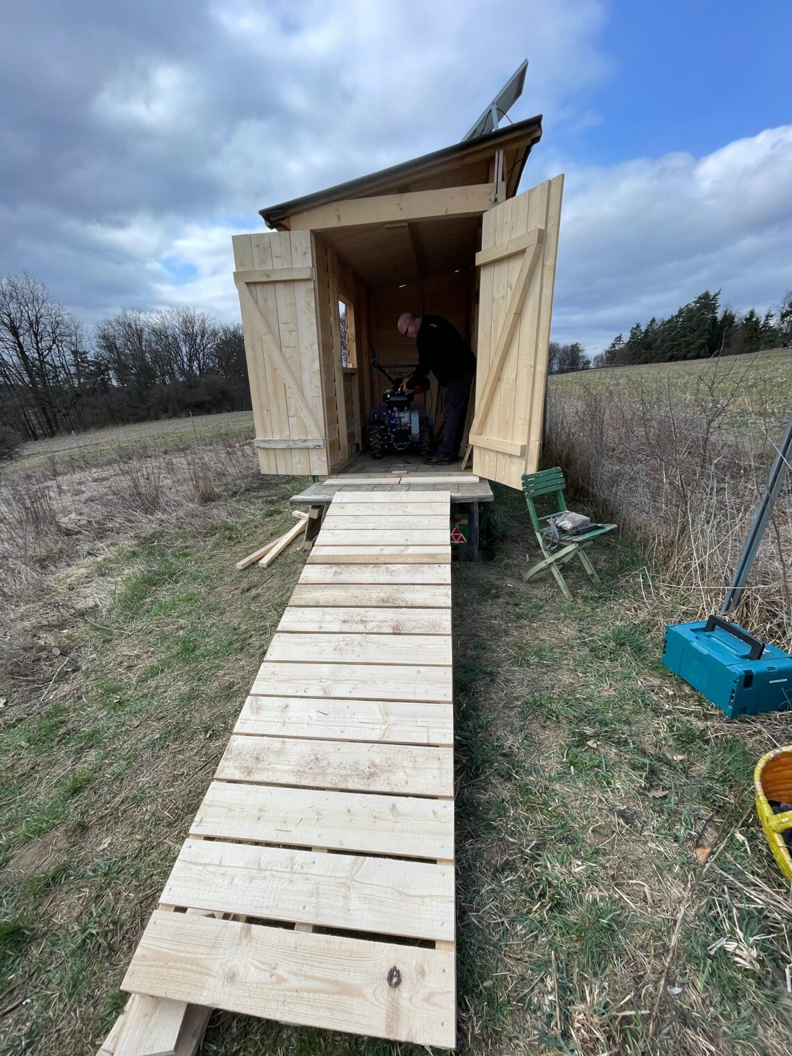 So nahmen sich Thomas, Sigi und Johnny ein Herz, Bauschrauber, Handkreissäge und übrig gebliebenes Material und bauten eine passende Rampe. Passt, sitzt, hat Luft und Sinn.